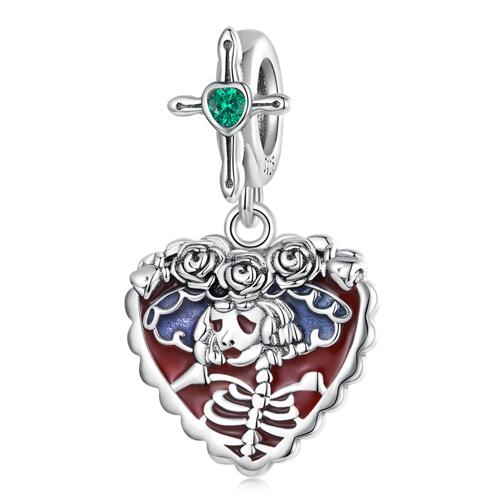 -GlOW-IN-THE DARK- -ANTIQUE-PURE-SILVER- -ENAMEL- -PAVE CZ-