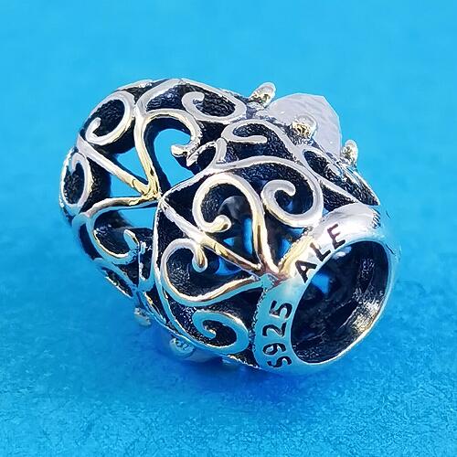 -GlOW-IN-THE DARK- -ANTIQUE-PURE-SILVER- -ENAMEL- -PAVE CZ-