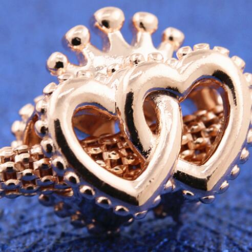 Rose Goldplated AAA GRADE ALE R Heart With Crown Charms